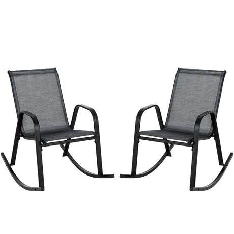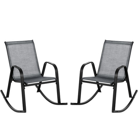 Set of 2 Metal Patio Rocking Chair with Breathable Seat Fabric-Gray