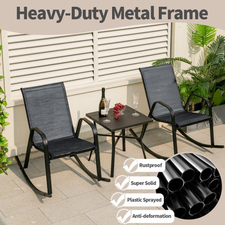 3 Pieces Outdoor Swivel Rocker Set with Small Side Table-Gray