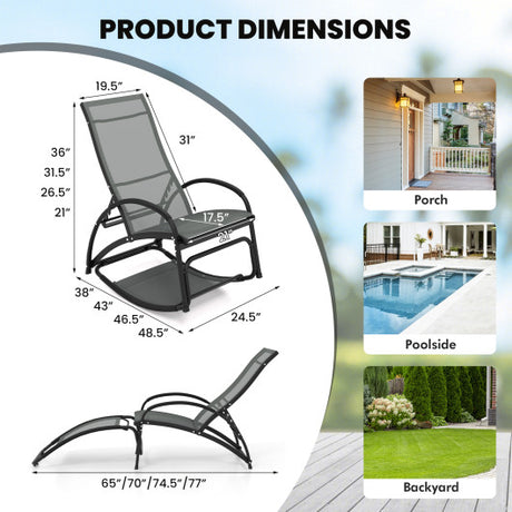2-in-1 Outdoor Rocking Chair with 4-Position Adjustable Backrest for Patio Porch Poolside-Gray