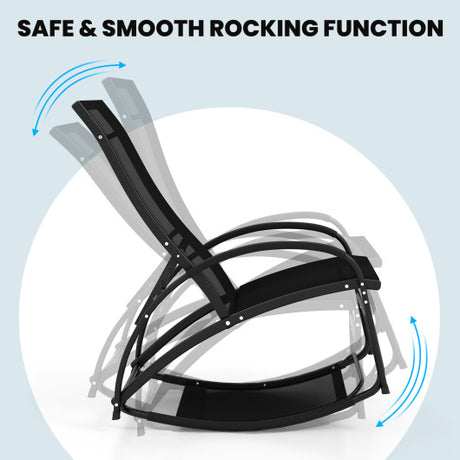 Set of 2 Metal Patio Rocking Chair with Breathable Seat Fabric-Black