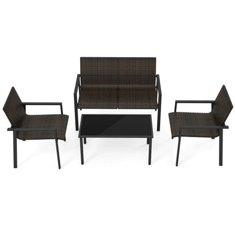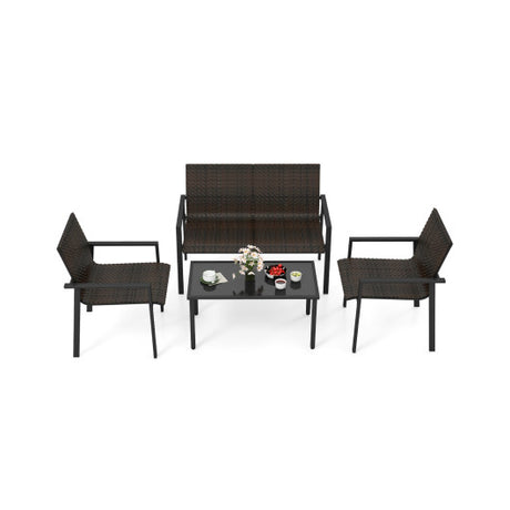 4 Pieces Patio Furniture Set with Heavy Duty Galvanized Metal Frame-Brown