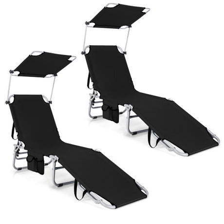 Set of 2 Portable Reclining Chair with 5 Adjustable Positions-Black