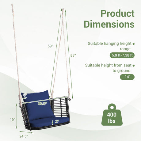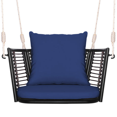 Single Person Hanging Seat with Woven Rattan Backrest for Backyard-Blue
