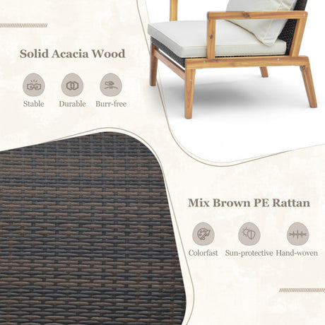 5 Piece Patio Wicker Sofa Set with Seat and Back Cushions-Natural