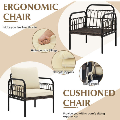 3 Pieces Patio Wicker Conversation Set with Cushions and Tempered Glass Coffee Table-Beige