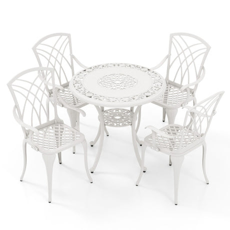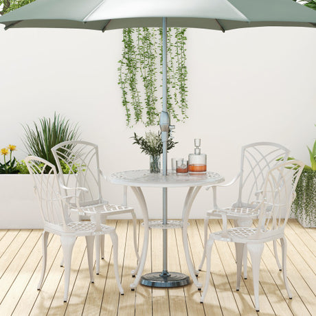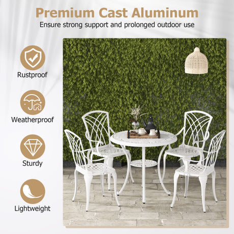 5 Piece Patio Bistro Table Chair Set with Umbrella Hole and Aluminum Frame-White