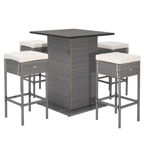 5 Pieces Outdoor Wicker Bar Table Set with Hidden Storage Shelves-White