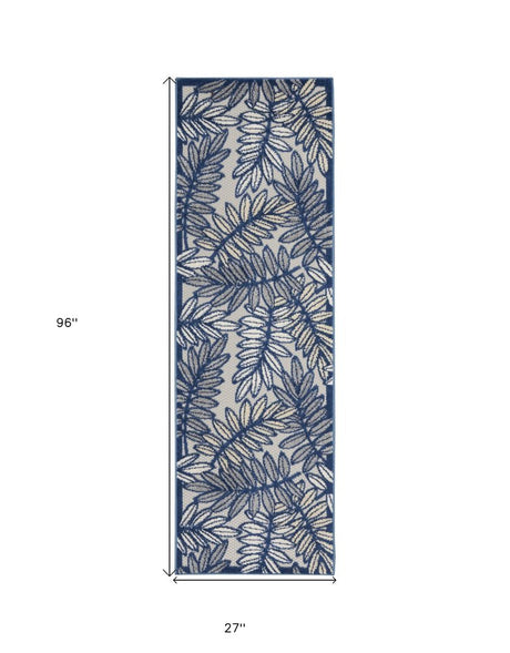 8' Ivory And Blue Indoor Outdoor Runner Rug