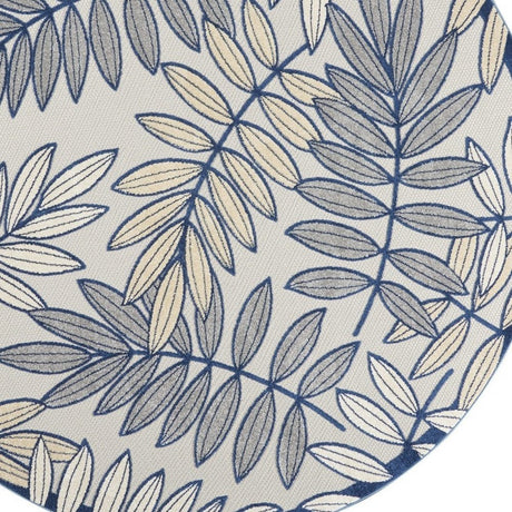 5' X 5' Ivory And Blue Round Indoor Outdoor Area Rug