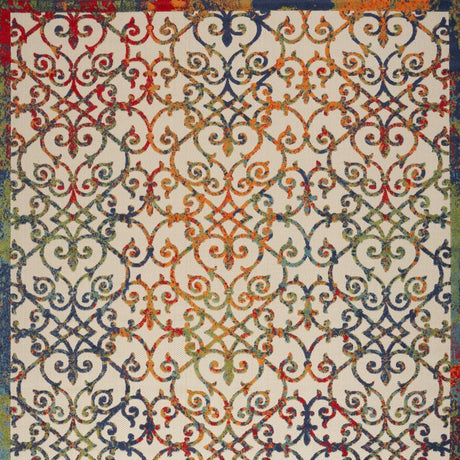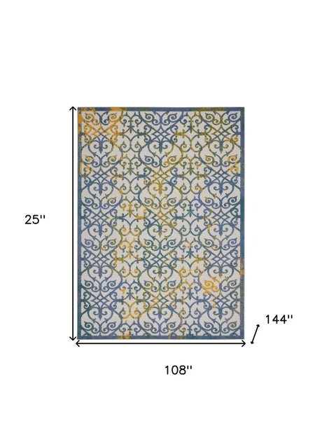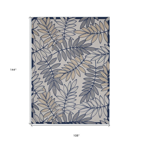 9' X 12' Ivory And Blue Indoor Outdoor Area Rug