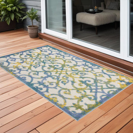 3' X 4' Ivory And Blue Indoor Outdoor Area Rug