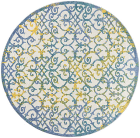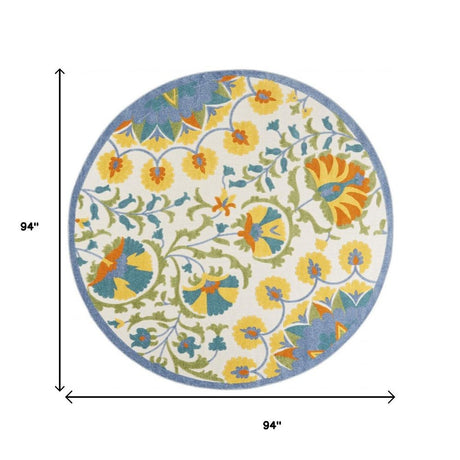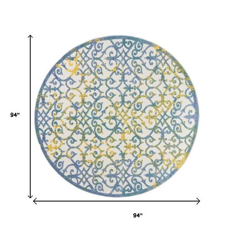 8' X 8' Ivory And Blue Round Indoor Outdoor Area Rug