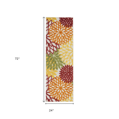 6' Red And Ivory Indoor Outdoor Runner Rug