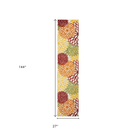 10' Red And Ivory Indoor Outdoor Runner Rug
