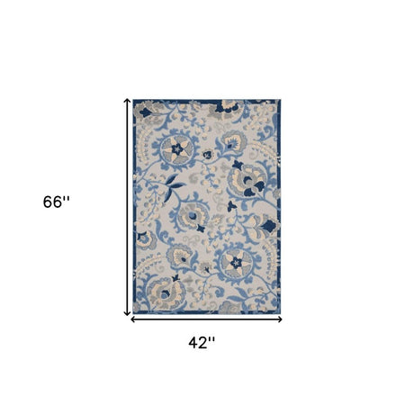 3' X 4' Ivory And Blue Indoor Outdoor Area Rug