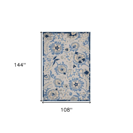 10' X 13' Blue And Ivory Indoor Outdoor Area Rug