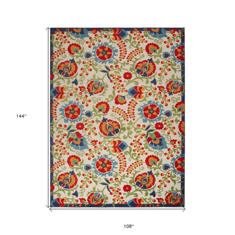 9' X 12' Green And Ivory Indoor Outdoor Area Rug