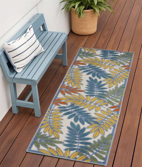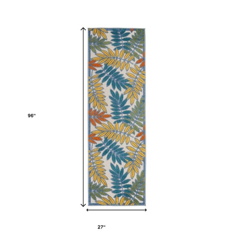 8' Green And Ivory Indoor Outdoor Runner Rug