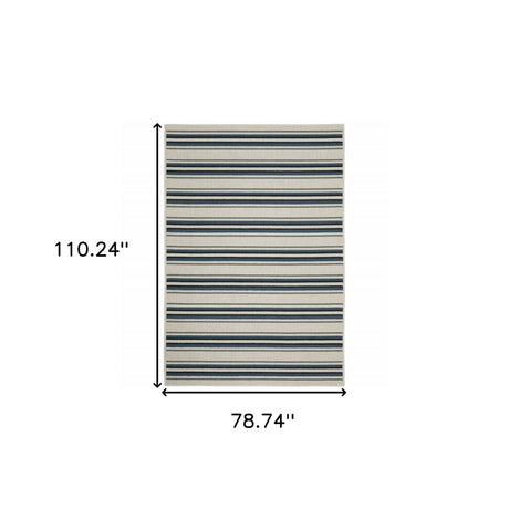 7' X 9' Blue and Beige Geometric Stain Resistant Indoor Outdoor Area Rug