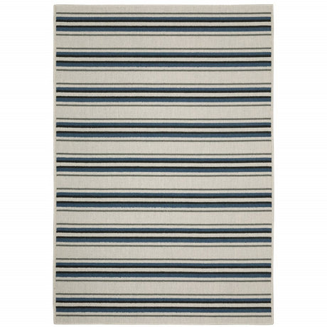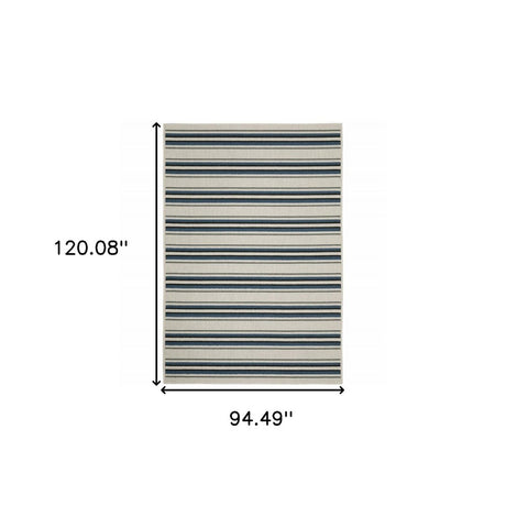 9' X 12' Blue And Beige Indoor Outdoor Area Rug