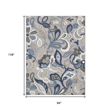 8' X 10' Blue And Gray Floral Stain Resistant Indoor Outdoor Area Rug