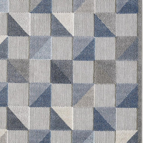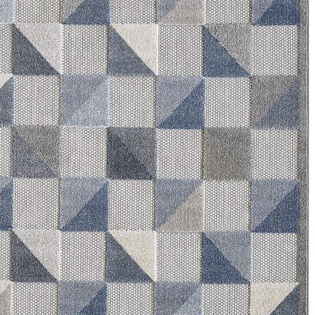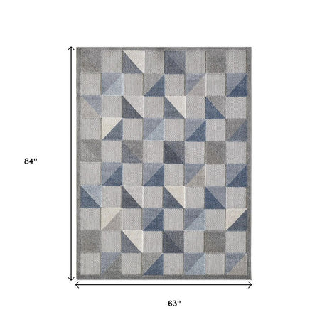 5' X 7' Blue And Gray Geometric Stain Resistant Indoor Outdoor Area Rug