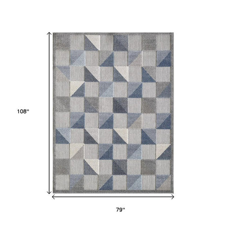 8' X 10' Blue And Gray Geometric Stain Resistant Indoor Outdoor Area Rug