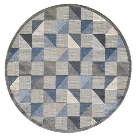 8' Round Blue And Gray Round Geometric Stain Resistant Indoor Outdoor Area Rug
