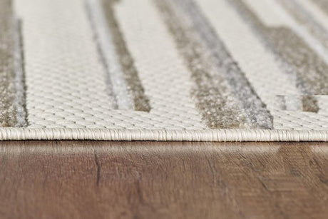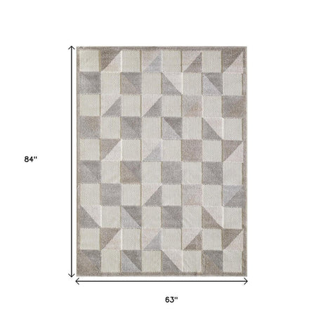 5' X 7' Beige Geometric Stain Resistant Indoor Outdoor Area Rug