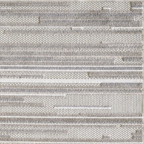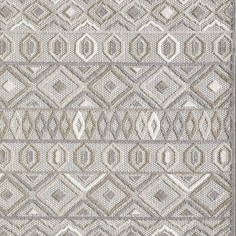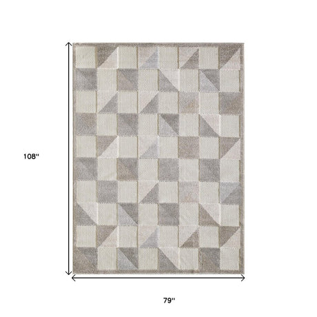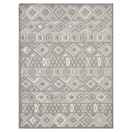 7' X 9' Beige Geometric Stain Resistant Indoor Outdoor Area Rug