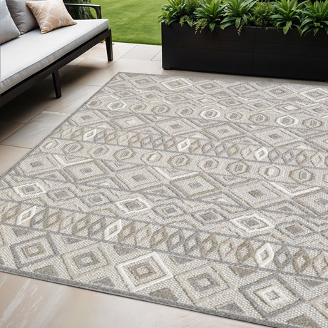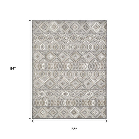 5' X 7' Gray Geometric Stain Resistant Indoor Outdoor Area Rug