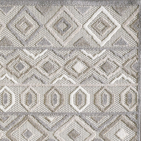 3' X 5' Gray Geometric Stain Resistant Indoor Outdoor Area Rug