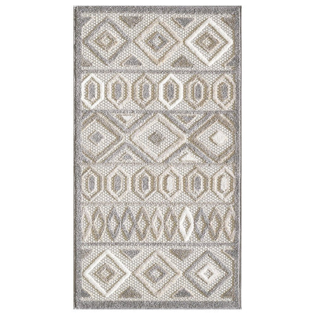 2' X 4' Gray Geometric Stain Resistant Indoor Outdoor Area Rug