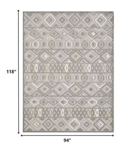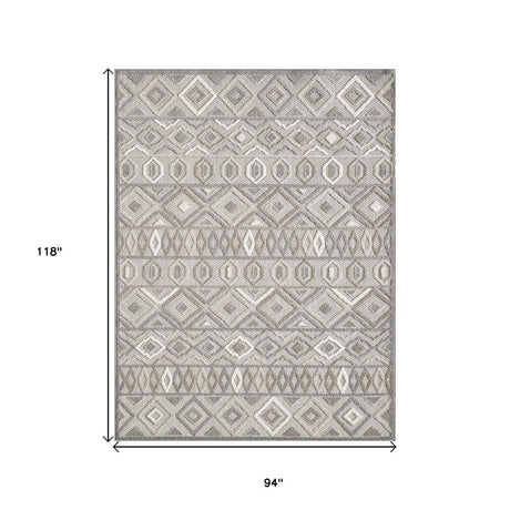 8' X 10' Gray Geometric Stain Resistant Indoor Outdoor Area Rug