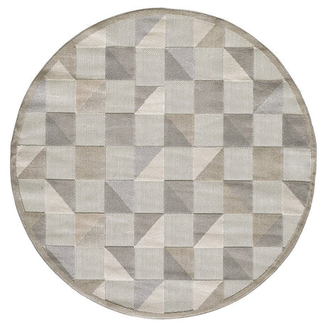 8' Round Gray Round Geometric Stain Resistant Indoor Outdoor Area Rug