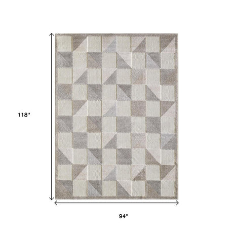 8' X 10' Beige Geometric Stain Resistant Indoor Outdoor Area Rug