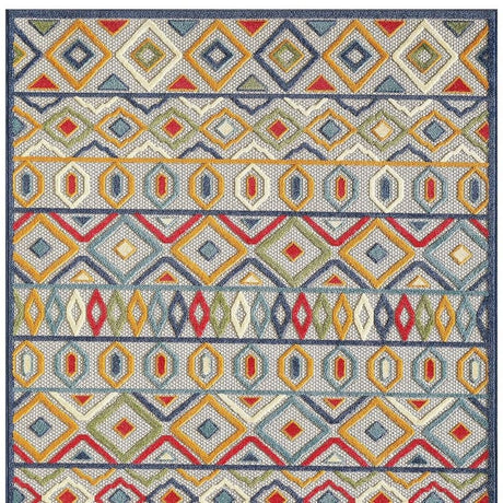 7' X 9' Blue Geometric Stain Resistant Indoor Outdoor Area Rug