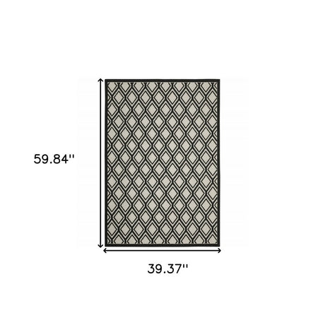 3' X 5' Beige and Black Geometric Stain Resistant Indoor Outdoor Area Rug