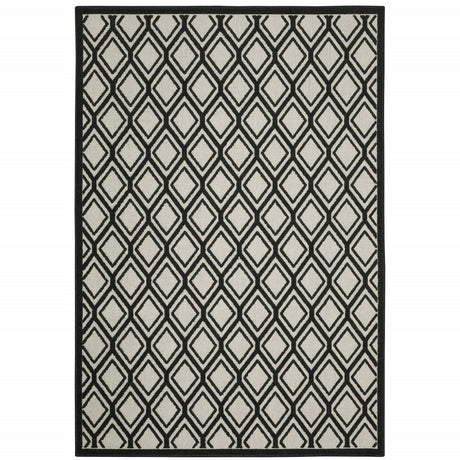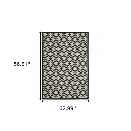 5' X 7' Beige and Black Geometric Stain Resistant Indoor Outdoor Area Rug