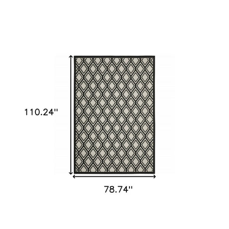 7' X 9' Beige and Black Geometric Stain Resistant Indoor Outdoor Area Rug