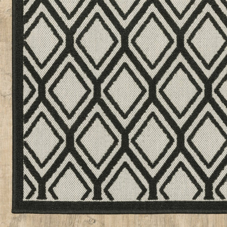 2' X 7' Beige and Black Geometric Stain Resistant Indoor Outdoor Area Rug