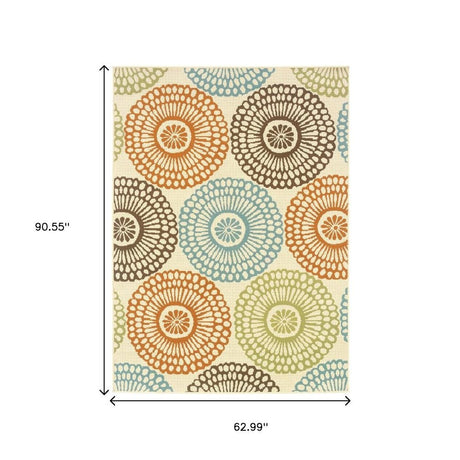 7' X 10' Yellow And Ivory Indoor Outdoor Area Rug