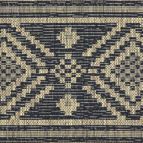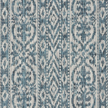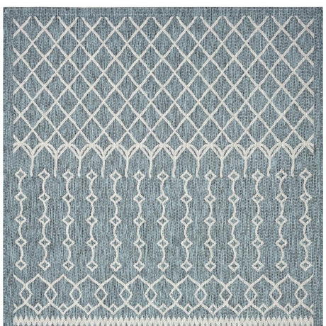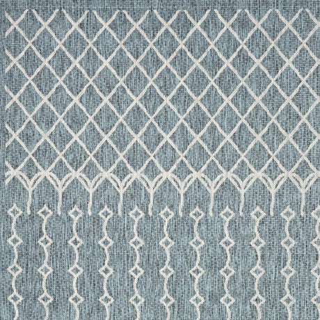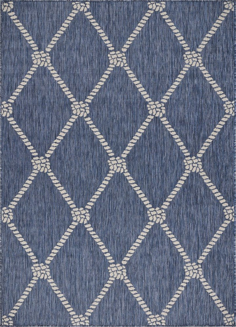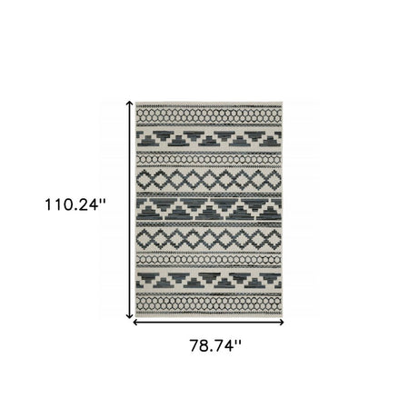 7' X 9' Blue and Beige Geometric Stain Resistant Indoor Outdoor Area Rug
