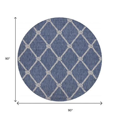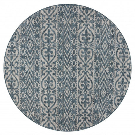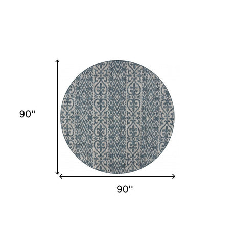 8' X 8' Blue And Gray Round Indoor Outdoor Area Rug