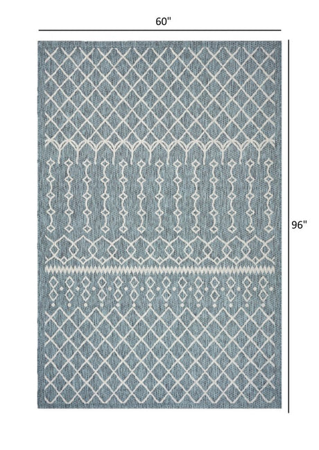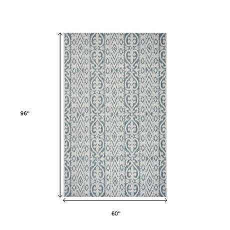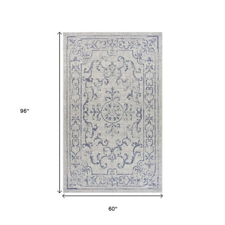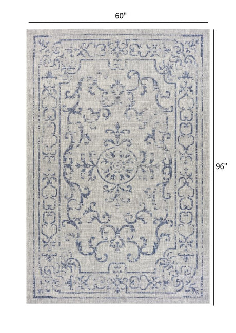 5' X 8' Blue And Gray Indoor Outdoor Area Rug