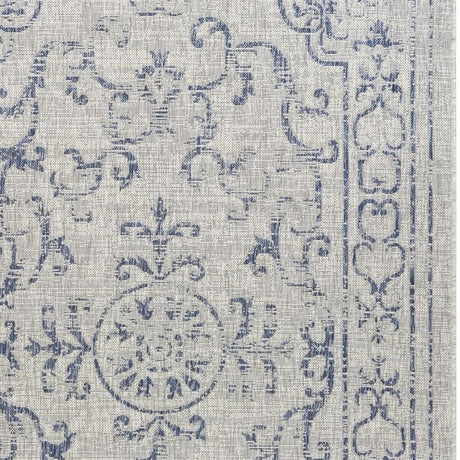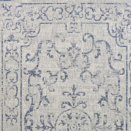7’ X 9’ Blue Gray Jacobean Floral Indoor Outdoor Area Rug