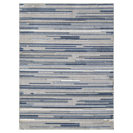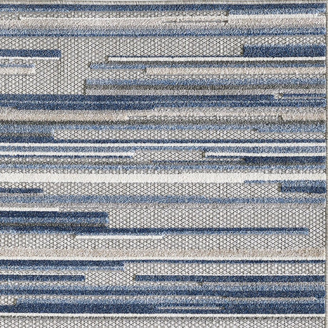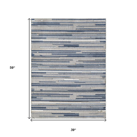 2' X 4' Blue and Gray Abstract Stripes Indoor Outdoor Area Rug