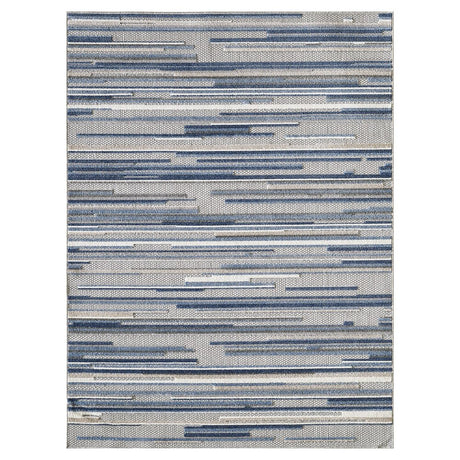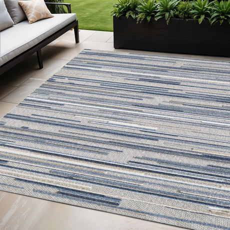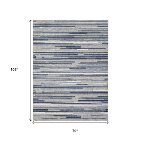 8' X 10' Blue Gray And Ivory Striped Indoor Outdoor Area Rug