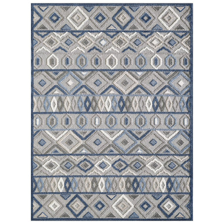 5' X 7' Blue And Gray Indoor Outdoor Area Rug
