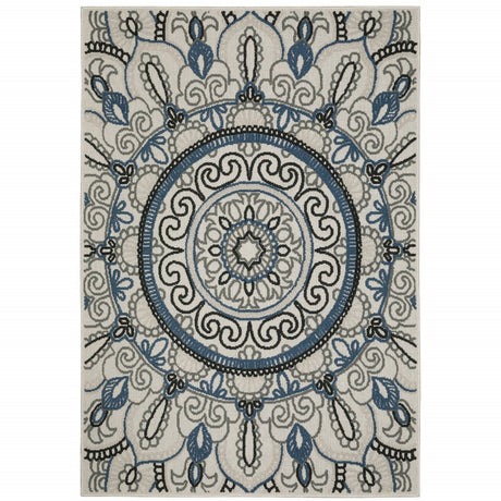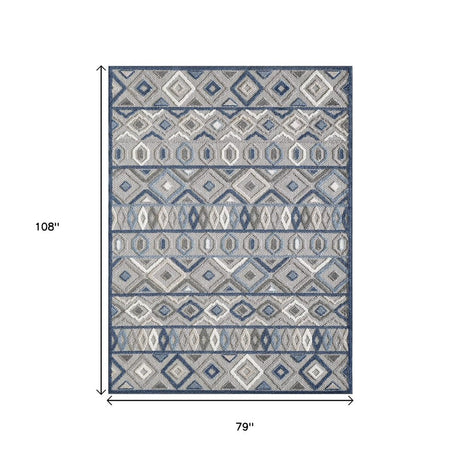 8' X 9' Blue And Gray Indoor Outdoor Area Rug